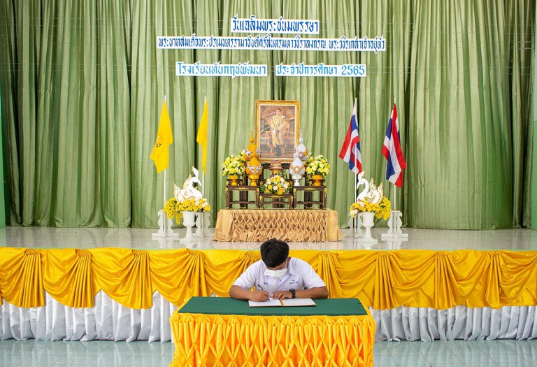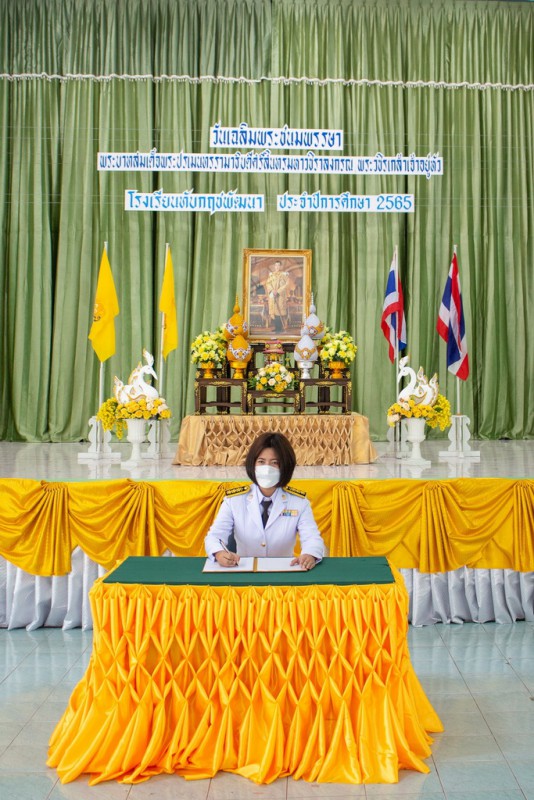 | เนื่องด้วยวันพฤหัสบดีที่ 28 กรกฎาคม 2565 เป็นวันเฉลิมพระชนมพรรษาพระบาทสมเด็จพระเจ้าอยู่หัว ในการนี้ โรงเรียนทับกฤชพัฒนา ได้มีการจัดพิธีเฉลิมพระเกียรติพระบาทสมเด็จพระเจ้าอยู่หัว เนื่องในโอกาสวันเฉลิมพระชนมพรรษา 28 กรกฎาคม 2565 ทั้งนี้โรงเรียนเชิญชวนให้ข้าราชการครูและบุคลาทางการศึกษา ร่วมใส่ชุดขาวและเสื้อเหลือง พร้อมนักเรียนร่วมทำพิธี บริเวณ ณ หอ ประชุมกฤชบงกช โรงเรียนทับกฤชพัฒนา ในวันที่ 27 กรกฎาคม 2565 |
