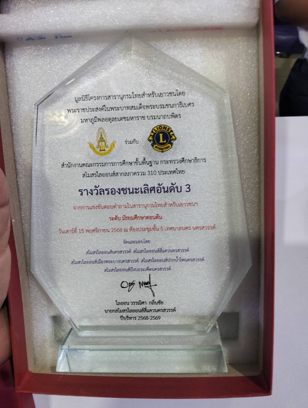 รางวัล รองชนะเลิศอันดับ 3 ระดับจังหวัด การแข่งขันตอบคำถามสารานุกรมไทย สำหรับเยาวชน ครั้งที่ 29 เขตพื้นที่จังหวัดนครสวรรค์