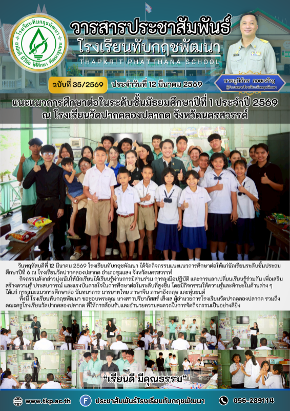 แนะแนวการศึกษาต่อในระดับชั้นมัธยมศึกษาปีที่ 1 ประจำปี 2569 ณ โรงเรียนวัดปากคลองปลากด จังหวัดนครสวรรค์