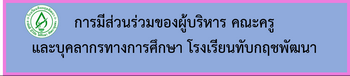 >>>การมีส่วนร่วมของผ้บูริหาร คณะครูและบุคลากรทางการศึกษาโรงเรียนทับกฤชพัฒนา<<<