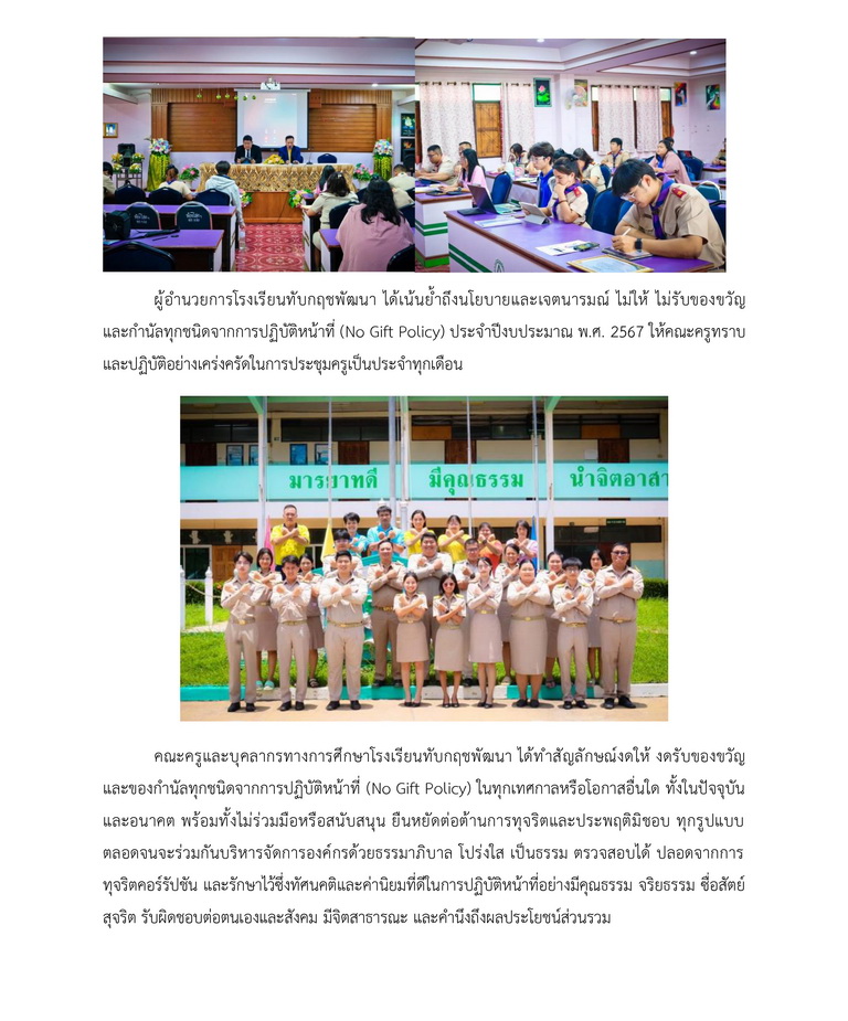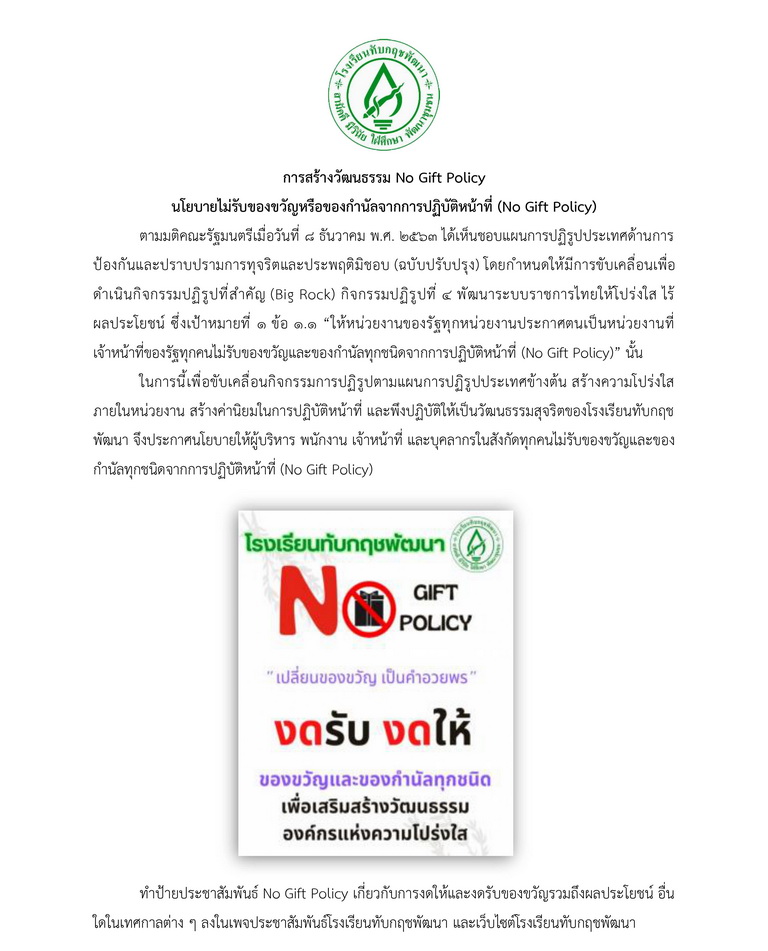 O26 : ประกาศเจตนารมณ์นโยบาย No Gift Policy จากการปฏิบัติหน้าที่