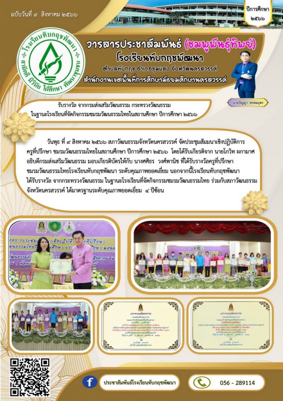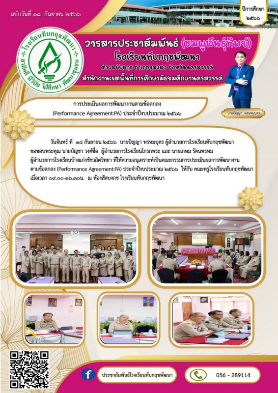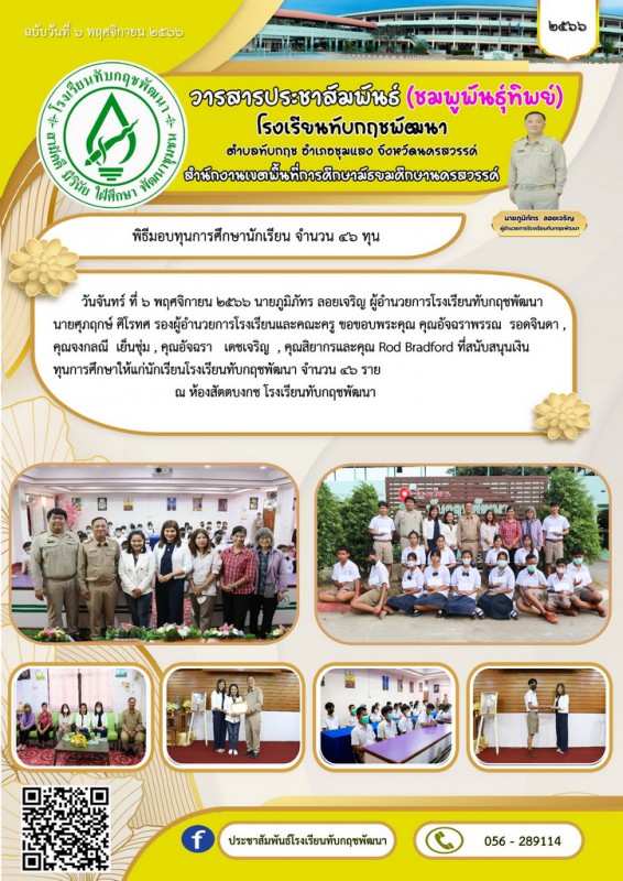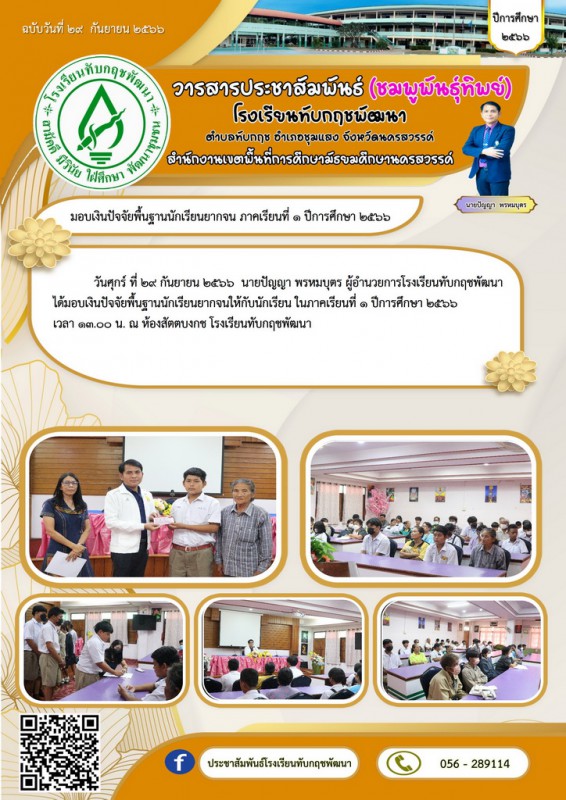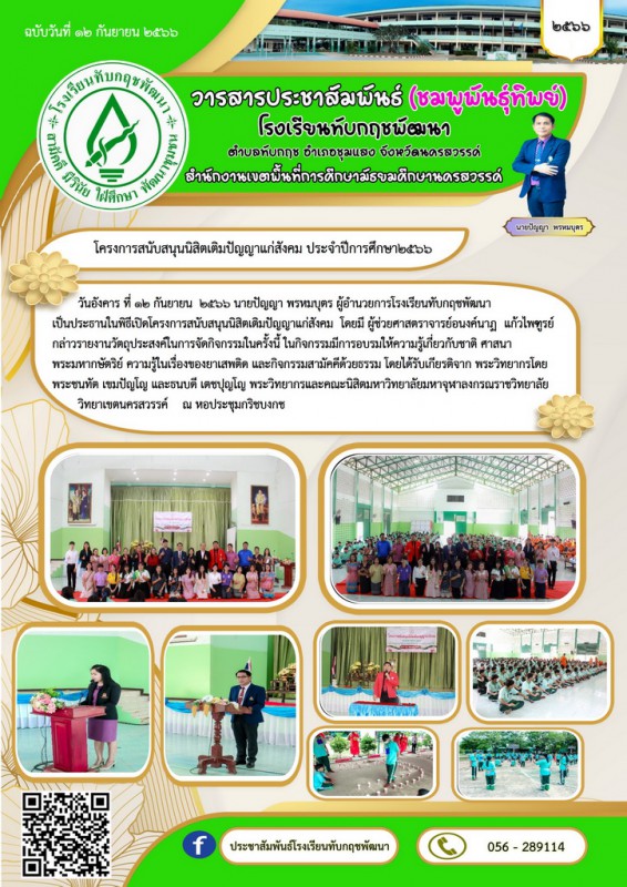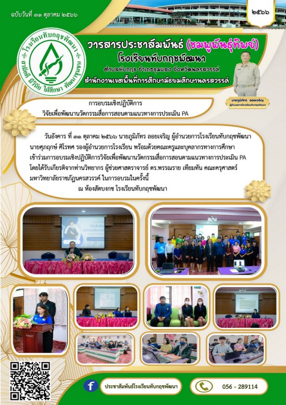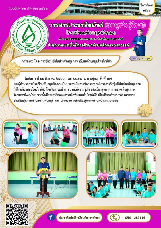 Facebook ประชาสัมพันธ์โรงเรียนทับกฤชพัฒนา