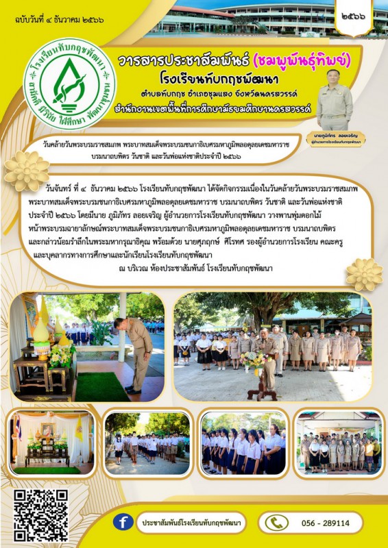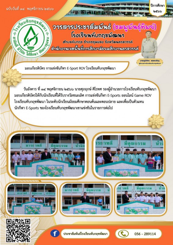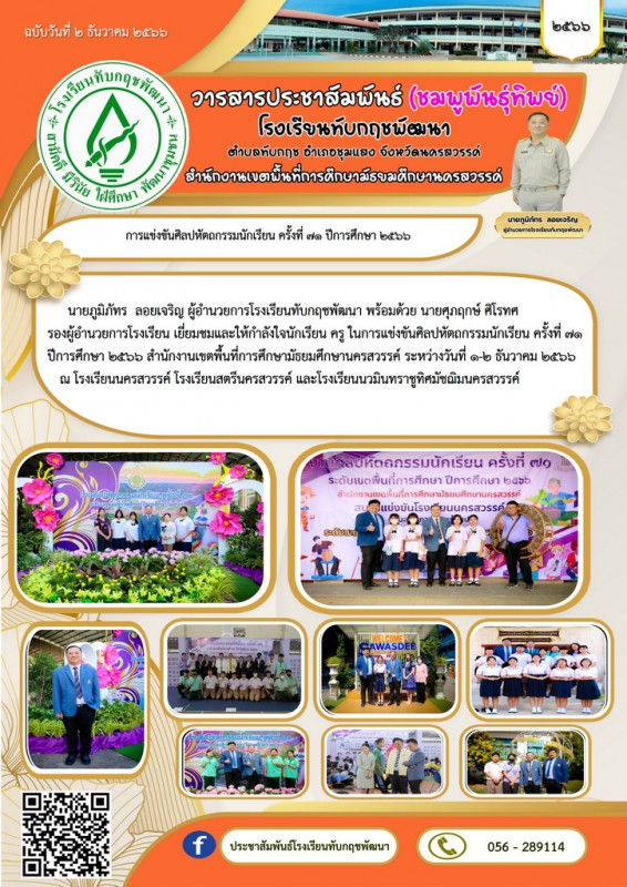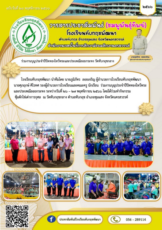 Facebook ประชาสัมพันธ์โรงเรียนทับกฤชพัฒนา