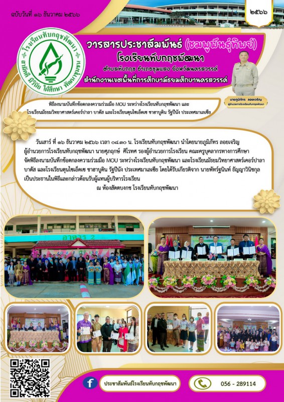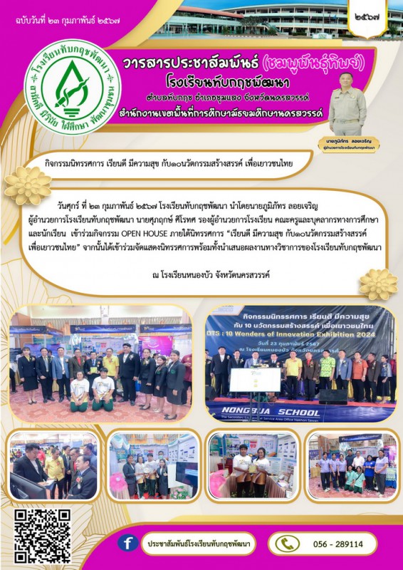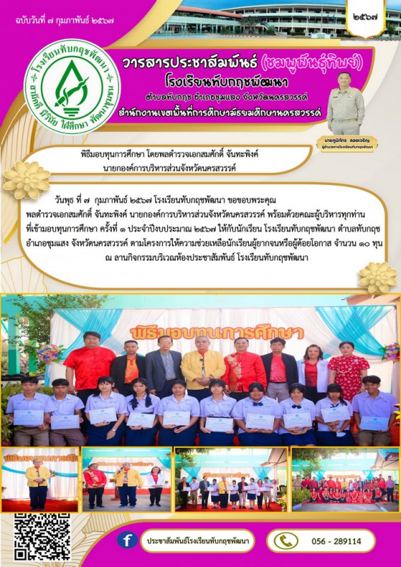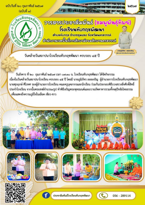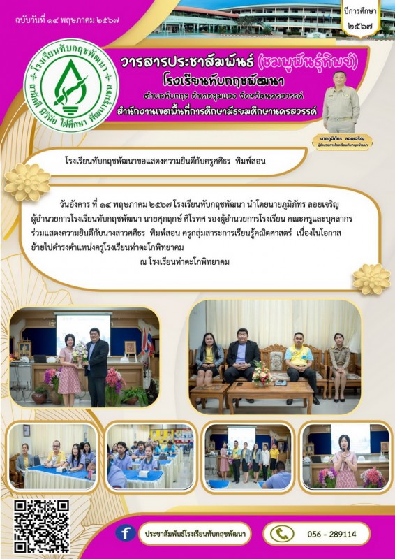 Facebook ประชาสัมพันธ์โรงเรียนทับกฤชพัฒนา