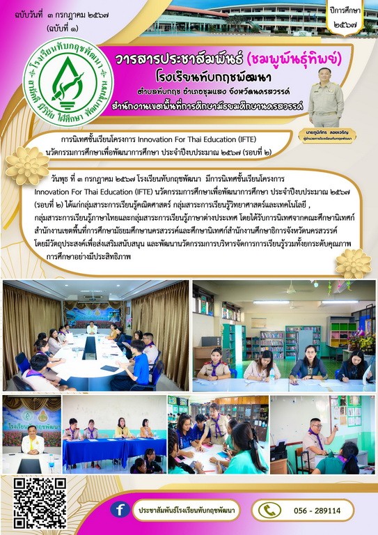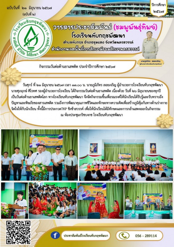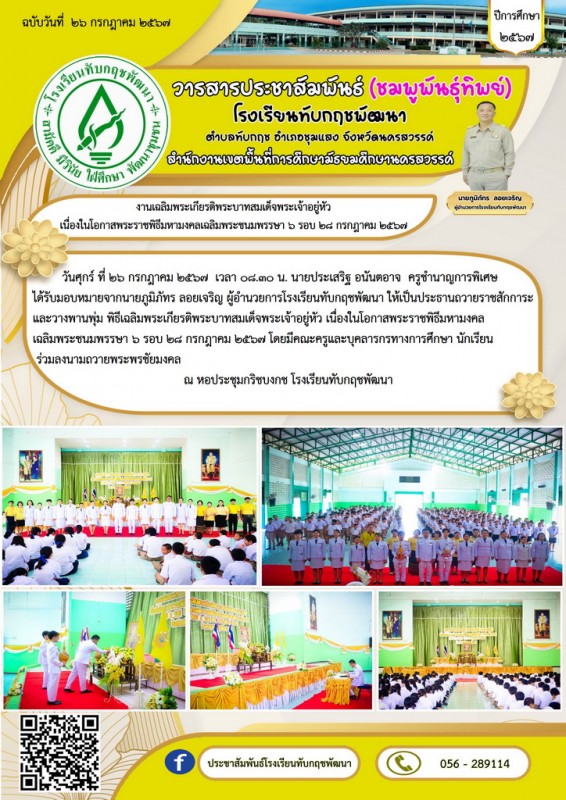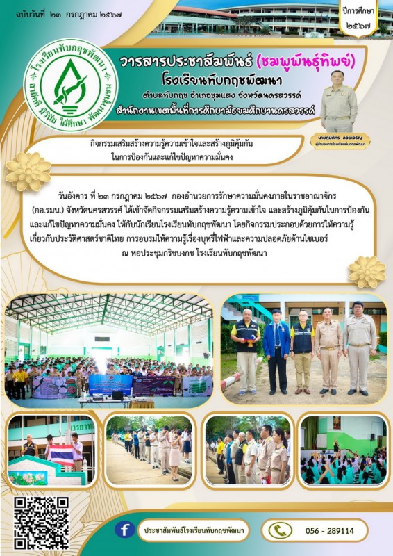 Facebook ประชาสัมพันธ์โรงเรียนทับกฤชพัฒนา
