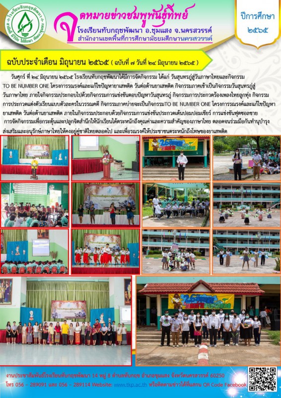 Facebook ประชาสัมพันธ์โรงเรียนทับกฤชพัฒนา
