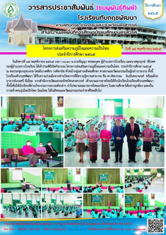 Facebook ประชาสัมพันธ์โรงเรียนทับกฤชพัฒนา