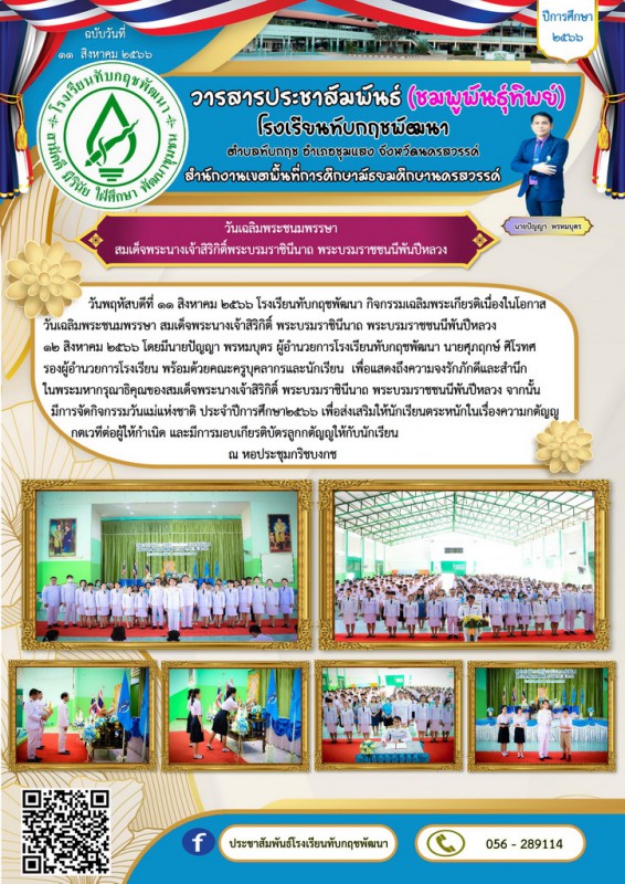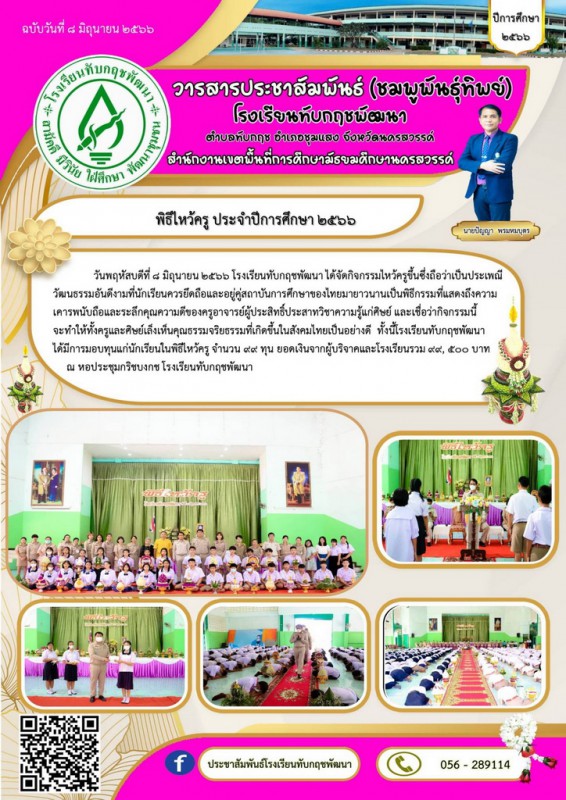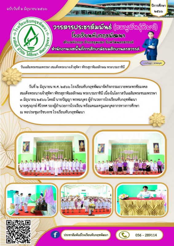 Facebook ประชาสัมพันธ์โรงเรียนทับกฤชพัฒนา
