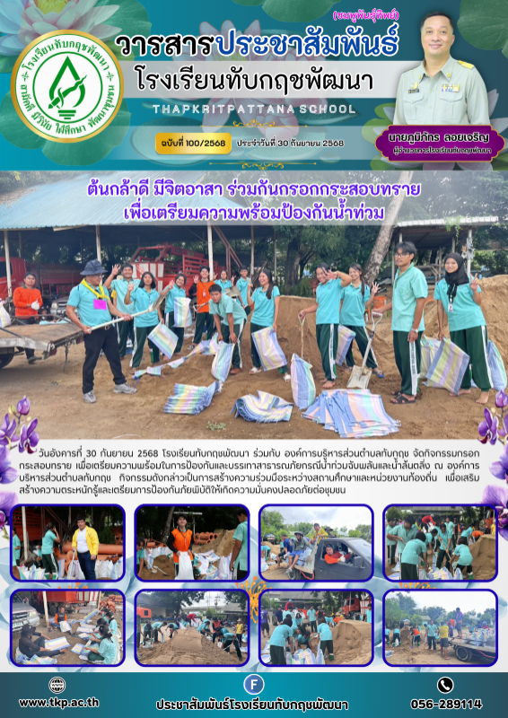 ต้นกล้าดี มีจิตอาสา ร่วมกันกรอกกระสอบทราย เพื่อเตรียมความพร้อมป้องกันน้ำท่วม
